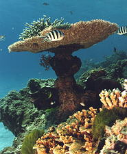 The Great Barrier Reef possesses an abundance of coral types. Their variety creates a magnificent display of different shapes, sizes and colours. About 350 species of stony corals have been scientifically identified in the Great Barrier Reef.